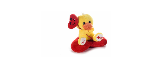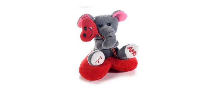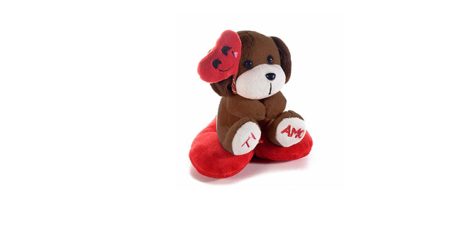 Peluche su cuscino a forma di cuore rosso con scritta Ti amo e palloncino a cuore con sorriso, per San Valentino